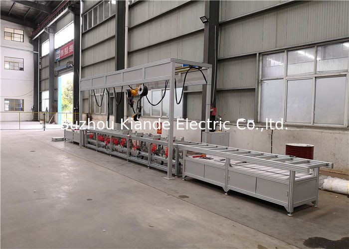 De handlopende band van Busduct is samengesteld uit drie delen, pre-assemblagepost, het vastnagelen post en bijkomende assemblagepost. Het wordt toegepast voor twee types van busbar: tweedelig type en vier stuktype. De hoofdfunctie van deze machine is de busbar leider in gemak te bevestigen van het vastnagelen. Al verrichting zoals het roteren, het vastnagelen en enz. zal manueel worden gedaan.